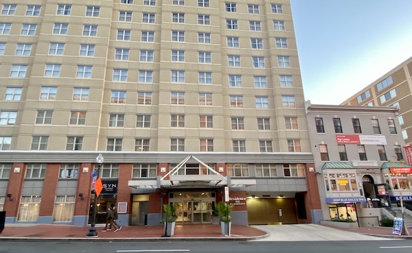 Major conference hotel with 1,000+ rooms in twin curving buildings 4 blocks north of Dupont Circle (12 minutes north of downtown). Seasonal outdoor pool. Parking $40, Pets $50.